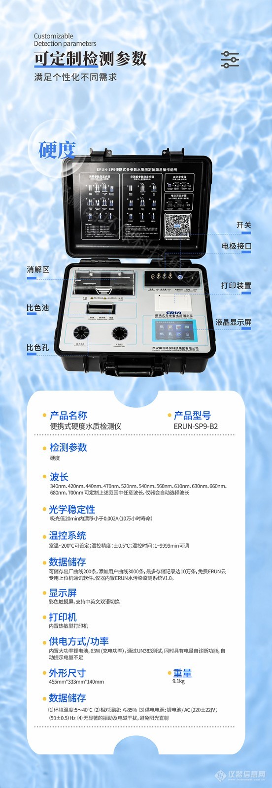 ERUN-SP7-B2便携式水质硬度检测仪产品参数: